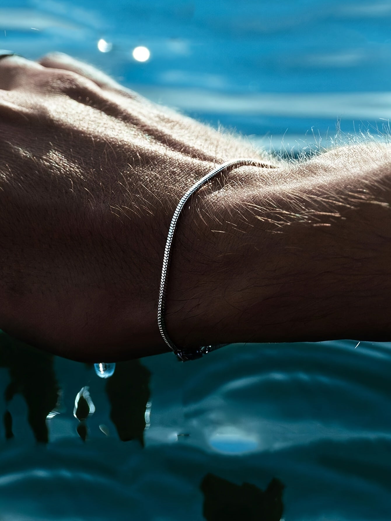 Silver stainless steel snake bone chain bracelet, slim and simple design that matches any look.